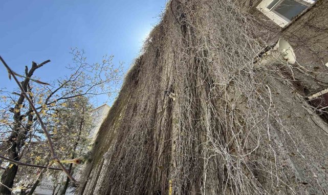 Eskişehir'de dış cephesini saran sarmaşıkla bilinen ve öyle isimlendirilen Hal Camii'nde, kış mevsiminin ardından dallar yeniden tomurcuklanmaya başladı.