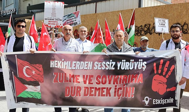 Eskişehir'de Tıp Fakültesi öğrencileri ile vatandaşlar, Filistin'de gerçekleşen savaşa ve özellikle sağlık çalışanlarının maruz kaldığı şiddete dikkat çekmek amacıyla yürüyüş düzenledi.Eskişehir Adalar mevkiinde meydana gelen sessiz yürüyüş. hekim ve sivil kaybına dikkat çekti. Yürüyüşte, 'Hekimlerden sessiz yürüyüş: Zulme ve soykırıma dur demek İçin!' yazılı pankartlar taşınarak mesaj verildi. Yürüyüşe katılanlar, Filistin bayrakları ve üzerinde 'Doctors Stand With Palestine' (Doktorlar Filistin'in Yanında) yazan pankartlarla Filistin halkına desteklerini dile getirdi. Bazı sağlık çalışanlarının beyaz önlüklerine kırmızı el izleri basarak, sağlık hizmeti verirken şiddete maruz kalan meslektaşlarına farkındalık oluşturmaya çalıştığı görüldü. Eylemciler tarafından taşınan pankartlarda, 'Terörün örgütüne de devletine de karşıyız' ve 'Beyaz önlüklerimiz kana bulaşmasın' gibi ifadelerle hem terörün her türlüsüne karşı oldukları hem de sağlık çalışanlarının güvenliğinin sağlanması gerektiği vurgulandı. Gerçekleşen sessiz yürüyüşte yaklaşık 20 ila 25 Tıp Fakültesi öğrencisi Filistin'deki çatışmalarda yaşanan sivil kayıplara ve şiddetin sağlık çalışanları üzerindeki yıkıcı etkilerine dikkat çekti."Gözyaşının dini olmaz"Osmangazi Üniversitesi Tıp Fakültesi 3. Sınıf öğrencisi Kadir Yılmaz. meslektaşlarının kan izlerini kalplerinde taşıdığını belirterek, "İnfaz edilen meslektaşlarımızın kan izlerini kalbimizde taşıyarak toplandık. Susmanın ihanete dönüştüğü bir zamanda susmamak için buradayız. Bizler gözyaşının dini olmaz diyen vicdan sahibi insanlarız. Bizler mazlumun din dil ve ırkına bakmaksızın şahit olunan her vahşetin karşısında durulması gerektiğinin farkında olan insanlarız" dedi.