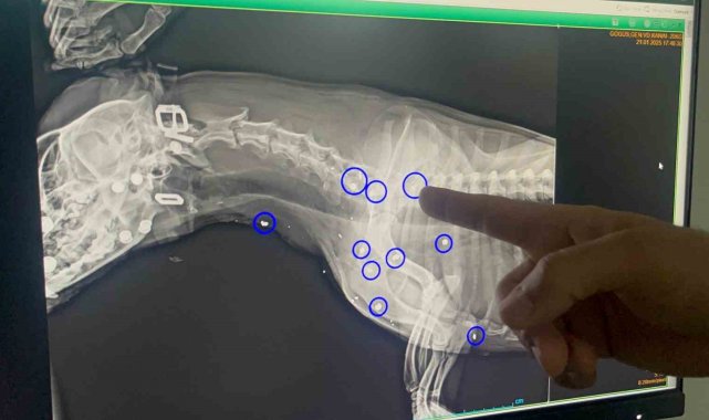 Eskişehir'de kimliği belirsiz kişi veya kişilerce tüfekle vurulan ve 12 yerinden yara alan sokak köpeği, hayvan severler tarafından tedavi ettirildi.Tepebaşı ilçesi Aşağısöğütönü Mahallesi'nde sahipsiz köpek, hayvan severlerin iddiasına göre 21 Ocak tarihinde av tüfeği benzeri bir silah ile vuruldu. Vücudunun 12 yerine saçma değen ve yaralanan köpek özel bir veteriner kliniğinde tedavi alındı.Köpeğin sahiplendirileceğini söyleyen Yaren Ünlü şöyle konuştu;"İlk geldiğinde zaten saat 05.00 civarlarında geldi. Karnının tok olduğunu düşündüğümüz için anestezi uygulayamadık. Ertesi gün röntgeni çekildiğinde de 12 yerinde saçma yaraları olduğunu gördük. Hayati organlara çok yakın olduğu için saçmaları ne yazık ki alamadık. Şu anki süreçte de kalbinde bir büyüme olduğu için ne yazık ki anestezi uygulayamıyoruz, sonraki süreçte kurşun yaralarından dolayı zehirlenme var mı diye durumu mutlaka değerlendirip test ve kontrollerini yapacağız".