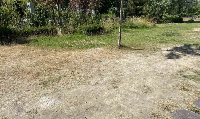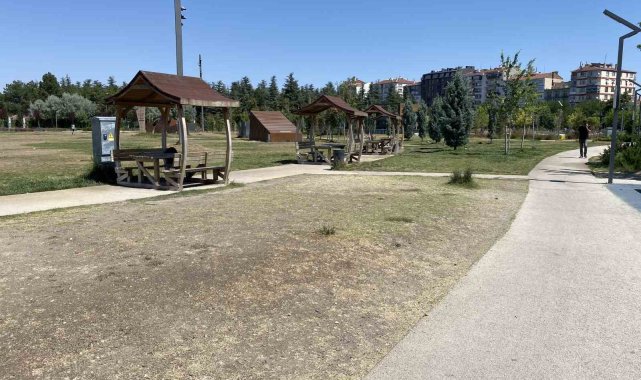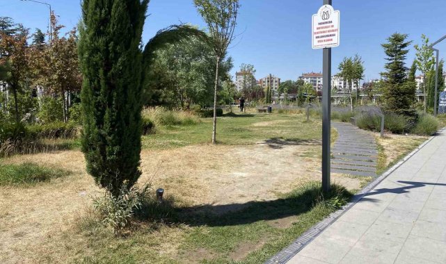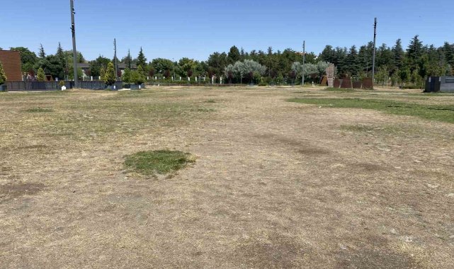Türk Dünyası Vakfı'nın sorumluluğunda olan Eskişehir Recep Tayyip Erdoğan Millet Bahçesi'nde bakımsız kalan çim alanlar toprak araziye dönüşmeye başladı.