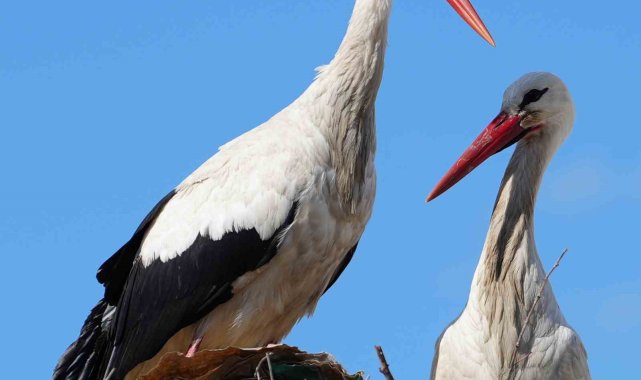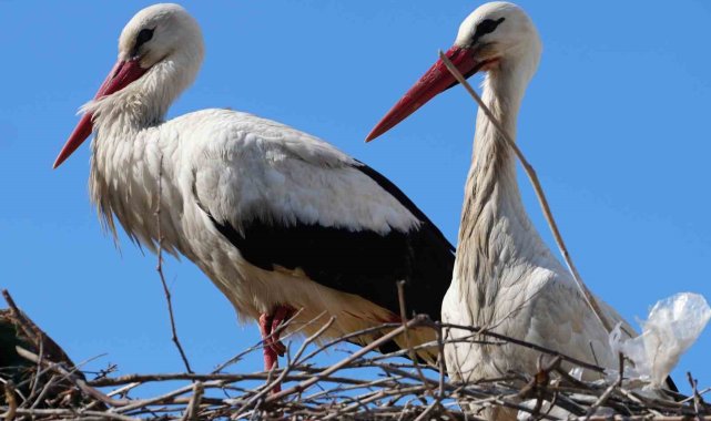 Kırıkkale'de esnafın "Rüzgar" ile "Nergis" adını verdiği iki leylek, 4'üncü yılında da aynı yuvaya döndü.