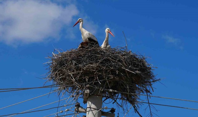 Kırıkkale'de esnafın "Rüzgar" ile "Nergis" adını verdiği iki leylek, 4'üncü yılında da aynı yuvaya döndü.Kırıkkale'de mermerciler sitesindeki elektrik direği, 4 yıldır iki leyleğin değişmeyen adresi oldu. Göç yolculuğuyla yeniden aynı yuvaya gelen leylekler, mermerci esnafı tarafından sevinçle karşılandı. İlk geldikleri günden bu yana ilgiyle takip edilen leyleklere, esnaf "Rüzgar" ve "Nergis" adını verdi. Zamanla mermerci sitesinin simgelerinden biri haline gelen leylekler, esnafın günlük yaşamında da ayrı bir yer edindi.Mermerci esnafından Bayram Timur, İHA muhabirine yaptığı açıklamada, leyleklerin yaklaşık 4 yıl önce bölgeye geldiğini belirterek, onların gelişinin siteye ayrı bir hava kattığını söyledi. Leyleklere alıştıklarını ifade eden Timur, bölgeye gelen birçok kişinin de leylekleri görmek ve onlar hakkında bilgi almak istediğini dile getirdi.Esnaf Ahmet Topal da leyleklerin bulunduğu noktaya ayrı bir güzellik kattığını anlattı. Şehir merkezine yakın bir alanda yuva kurmalarının dikkat çektiğini belirten Topal, ilk geldiklerinde bölgenin sakin olduğunu, daha sonra hareketlilik artsa da leyleklerin aynı yerde kalmayı sürdürdüğünü kaydetti. Kenan Timur da leylekleri artık bölgenin bir parçası gibi gördüklerini söyledi. İmkanları ölçüsünde yardımcı olmaya çalıştıklarını anlatan Timur, leyleklerin yıllardır aynı yuvaya dönmesinin kendilerini mutlu ettiğini ifade etti.Vatandaşlardan Serdar Görgülü ise yol kenarında böyle bir manzarayla karşılaşmanın farklı bir güzellik olduğunu ifade etti. Leylekleri misafir gibi gördüklerini söyleyen Görgülü, esnafın da onları koruyup benimsediğini belirtti.