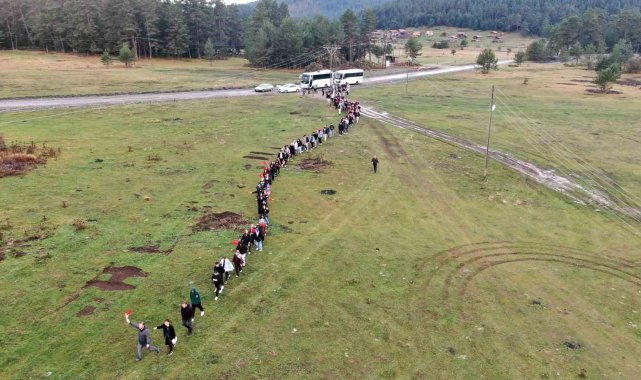 Kastamonu'nun Araç ilçesinde yaylada düzenlenen Cumhuriyet Bayramı kutlamasında öğrenciler "ay yıldız" koreografisi oluşturarak, Cumhuriyet'in 102'nci yılında 102 meyve çekirdeği dikti.Doğa turizminin merkezlerinden olan Kastamonu, yaylalarıyla da son dönemde ön plana çıkmaya başladı. Kastamonu'nun Araç ilçesinde 48 kilometrelik rota üzerinde bulunan 33 yayla, sonbahar mevsiminde çeşitli etkinliklerle misafirlerini ağırlıyor. Cumhuriyet Bayramı'nın coşkusu da yaylada yaşandı. Kastamonu Üniversitesi Araç Rafet Meslek Yüksekokulu, Araç Kaymakamlığı, Araç Belediyesi, Kastamonu Doğa Koruma ve Milli Parklar Müdürlüğü ile Araç Orman İşletme Müdürlüğü'nün destekleriyle ilçedeki Fındıklı Yaylası'nda "Cumhuriyetin Işığında, Doğanın İzinde" programı düzenlendi. Etkinliğe Araç Rafet Meslek Yüksekokulu ile Kastamonu Üniversitesi Eko Turizm ve Çevre Topluluğu öğrencileri de katıldı. Programda Munay Yaylası'ndan toplanan 500'den fazla öğrenci, Gölcük, Sıragömü ve Fındıklı yaylalarına yürüyüş gerçekleştirdi. Yaklaşık 5 kilometre yürüyen öğrenciler, güzergah üzerindeki İntaş Mağarası'nı da gezdi. Yürüyüş sonrası ay yıldız koreografisi oluşturan öğrenciler, yaban hayatı için Cumhuriyet'in 102'nci yılında 102 meyve çekirdeğini de toprakla buluşturdu.Düzenlenen programda konuşan Araç Kaymakamı Ali Emre Tekin, "İnşallah daha güzel günlerde bir arada oluruz. Kapımız her zaman özellikle gençlere sonuna kadar açık. Bizi her zaman rahatsız edebilirsiniz. Çekinmeden derdiniz ile dertleniriz, sıkıntılarınızı paylaşırız. Cumhuriyetimizin 102. yılı kutlu olsun" dedi."Araç'ın doğal kaynakları ve güzelliklerini topluma kazandırmayı amaçlıyoruz"Araç Rafet Meslek Yüksekokulu Müdürü Miraç Aydın da, "Cumhuriyetimizin 102'nci yılını kutlamanın gurur ve coşkusunu hep birlikte yaşıyoruz. Bu anlamlı günde bir araya gelmemizin yalnızca geçmişimizi anmak değil, geleceğe umutla bakmak açısından da büyük bir değeri olduğunu düşünüyoruz. Cumhuriyet bizde sadece özgürlük ve eşitlik değil, aynı zamanda üretme, koruma ve geleceğe sahip çıkma sorumluluğu da vermiştir. Biz de bugün bu bilinci doğayla buluşturduk. Cumhuriyetimizin 102'nci yılında yürüyüş sırasında 102 meyve çekirdeğini doğayla buluşturduk. Her bir çekirdek, Cumhuriyetimizin köklerinden filizlenen bir umudu temsil etmektedir" diye konuştu."Bu büyük coşkuyu doğa harikası yaylalarımızda kutlamak istedik"Kastamonu Üniversitesi Öğretim Görevlisi Hikmet Haberal ise, "Cumhuriyetimizin 102. yıl dönümü etkinlikleri vesilesiyle yaylada bulunuyoruz. Biz bu dağlarda bu yaylalarda çok fazla çalışmalar yaptık. Kurum amirlerimiz ile birlikte öğrenci kardeşlerimizle beraber bu coşkuyu bu topraklarda kutlamak istedik. 'Cumhuriyetin ışığında, doğanın kalbinde' sloganıyla şu an gördüğünüz üzere etrafımızda muhteşem bir manzara var, bu cennet tabiatın bir harikası, bize sunulmuş bir lütuf. Etkinliğimize Munay Yaylası'ndan başladık, yürüyüş sırasında İntaş Mağarası'na da girdik. Amacımız etkinliği yaparken bölgemizi de tanıtmak. Bu doğa harikası, tabiat harikası yerlerimizi öğrencilerimize anlatmak istedik. İntaş Mağarası ziyaretimizin ardından doğaya 102'nci yıl dönümü anısına 102 yabani meyve çekirdeğini doğayla buluşturduk. Yaban hayatı ve burada yaşayan yerel halkımız için bu meyveleri diktik. Ardında toplamda 2,5 kilometrelik bir yürüyüşümüz ile birlikte Fındıklı Yaylasına kadar geldik. Burada ikramlarımız olacaktır" şeklinde konuştu."Doğanın enerjisi çok güzel ve bizi motive ediyor"Hakkari'den Kastamonu Üniversitesi'ne geldiğini belirten Tuğba Ertuş, "Çok beğendim. Çok eğlenceli etkinlikler gerçekleştirdik, çok güzel deneyimlerimiz oldu. Öğrencilerle birlikte sosyal aktiviteler gerçekleştirdik ve burayı çok beğendim. Çok güzel bir his, farklı bir his çünkü burada hep birlikte şehir merkezine çok uzak bir yerde Cumhuriyeti kutluyoruz. İlk defa böyle bir deneyimim olduğu için çok mutluyum. Ayrıca buradaki herkesin enerjisi ve doğanın enerjisi diyelim, belki de çok güzel bir şekilde bizi motive ediyor ve cumhuriyetin coşkusunun daha iyi bir içten hissettiriyor" ifadelerini kullandı.Kastamonu Üniversitesi öğrencisi Yağmur Irak ise, "İlk defa böyle yayla deneyimim oldu. Çok güzel, ortama da bayıldım, çok güzel oldu. Ortam harika, mükemmel. Mağaraya indik, baya zorlu yollar vardı, düştük kalktık ama güzeldi. Güzel bir deneyimdi. Yaylalarda gezdik, yolda yürüdük. Yeşillik, doğa harika zaten" şeklinde konuştu.Konuşmaların ardından Kaymakam Tekin, beraberindekilerle Araç'ın doğal güzelliklerini anlatan fotoğraf sergisini gezerek, Öğretim Görevlisi Hikmet Haberal'dan bilgi aldı. Etkinlikte ayrıca Soğucaova Yaylası'ndaki 1700 rakımlı Katbaşı zirvesine yamaç paraşütü ve cam seyir terası yapılması planı da gündeme getirildi.Programa Araç Kaymakamı Ali Emre Tekin, Araç Belediye Başkanı Süleyman Yazkan, Doğa Koruma ve Milli Parklar Genel Müdürlüğü 10. Bölge Müdürü Ali Bozkurt, Kastamonu Doğa Koruma ve Milli Park Müdürü Yalçın Uyanık, Araç Orman İşletme Müdürü Beytullah Çiftci, Araç Rafet Meslek Yüksekokulu Müdürü Miraç Aydın, Ersizlerdere Kalkınma Eğitim ve Eko Turizm Derneği Başkanı Mustafa Çağır ile akademisyenler, öğrenciler ve vatandaşlar katıldı.