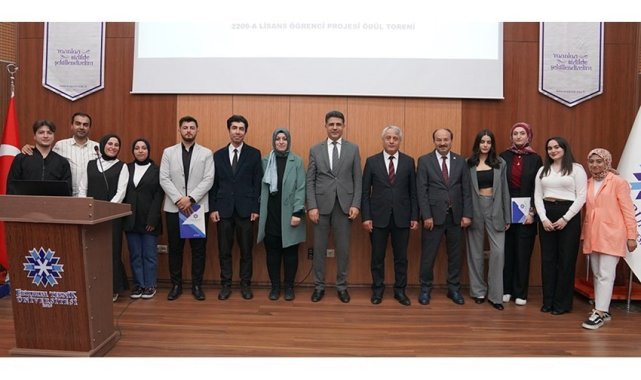 Erzurum Teknik Üniversitesi'nde (ETÜ) TÜBİTAK Bilim İnsanı Destek Programları Başkanlığı (BİDEB) tarafından yürütülen "2209-A Üniversite Öğrencileri Araştırma Projeleri Destekleme Programı" kapsamında destek almaya hak kazanan 74 proje ekibi için ödül töreni düzenlendi.TÜBİTAK tarafından üniversitelerde öğrenim görmekte olan lisans öğrencilerini bilimsel araştırma yapmaya teşvik etmek ve proje kültürünü yaygınlaştırmak amacıyla yürütülen 2209-A Üniversite Öğrencileri Araştırma Projeleri Destekleme Programı'na 2024 yılının 1. dönemde 125 proje sunan ve %59'luk kabul oranıyla 74 projesine destek alan ETÜ'de proje ekipleri için ödül töreni gerçekleştirildi.Fen Fakültesi Konferans Salonu'nda düzenlenen etkinliğe ETÜ Rektörü Prof. Dr. Bülent Çakmak, Rektör Yardımcıları Prof. Dr. Ceren Sultan Elmalı, Prof. Dr. Naim Ürkmez, dekanlar, akademisyenler ve projeleri kabul edilen öğrenciler katıldı.Programda konuşan Rektör Çakmak, öğrenci projelerinin yalnızca bireysel başarıyı olmadığını aynı zamanda takım çalışması, bilimsel üretkenlik ve proje kültürünün üniversite genelinde yaygınlaşmasını da temsil ettiğini belirterek: "Bu projeler, öğrencilerimizin üniversite eğitimi süresince edindikleri bilgileri uygulamaya dönüştürdükleri somut çıktılardır. Projelerin TÜBİTAK gibi saygın bir kurum tarafından desteklenmeye layık görülmesi, yapılan çalışmaların niteliğini tescil eder niteliktedir. Bu başarı, öğrencilerimizin sadece akademik değil aynı zamanda araştırmacı yönlerini de geliştirmeleri açısından büyük önem taşımaktadır. Ayrıca bu projeler, öğrencilerimizin gelecekte kamu ya da özel sektörde tercih edilmesinde güçlü bir referans niteliği taşıyacaktır. Çünkü günümüzde mezuniyet sonrası iş görüşmelerinde sadece not ortalamaları değil, öğrencinin ekip çalışmasına yatkınlığı, proje deneyimi ve bilimsel düşünceye katkı sunma potansiyeli de değerlendirme ölçütleri arasında yer almaktadır" diye konuştu.Proje çalışmalarının öğrencilerin takım ruhunu geliştirdiğine de dikkat çeken Çakmak, "Proje çalışmalarının öğrencilerimizin takım ruhunu geliştirdiğini memnuniyetle gözlemliyoruz. TÜBİTAK destekli projeler, öğrencilerimizin grup içinde sorumluluk alma, birlikte üretme ve çözüm geliştirme becerilerini pekiştiriyor. Bu da bizler için son derece kıymetli. Sosyal bilimler ve teknik bilimler alanında yürütülen projelerin bir arada değerlendirilmesi, disiplinler arası çalışma anlayışını da teşvik ediyor. Fakülteler bazında elde edilen başarılar ise üniversitemiz genelinde oluşan sinerjiyi açıkça ortaya koyuyor. Bu dönem en fazla proje desteği alan fakültemiz 21 projeyle Sağlık Bilimleri Fakültemiz oldu. Fen Fakültemiz ve Edebiyat Fakültemiz 16'şar projeyle bu başarıya ortak oldular. Mühendislik ve Mimarlık Fakültemiz 14, Spor Bilimleri Fakültemiz ise 7 projeyle sürece katkı sundular. Fakültelerimizin bu projelere gösterdiği ilgi ve sağladığı destek oldukça sevindirici. Özellikle sosyal bilimler alanındaki başvuruların sayısındaki artış, proje kültürünün yalnızca teknik disiplinlerle sınırlı olmadığını ve üniversitemizin tüm birimlerine yayıldığını göstermesi bakımından ayrıca önem arz ediyor" dedi.Rektör Çakmak'ın konuşmasın ardından devam eden tören, öğrencilerin ve danışmanların teşekkür belgelerini alması ve hatıra fotoğrafı çekilmesiyle sona erdi.