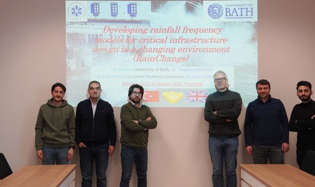 ETÜ ile Bath Üniversitesi arasında akademik iş birlikleri tüm hızıyla devam ediyor.Erzurum Teknik Üniversitesi (ETÜ) Mühendislik ve Mimarlık Fakültesi İnşaat Mühendisliği bölümü öğretim üyelerinden Prof. Dr. Fatih Tosunoğlu ile İngiltere'nin Bath Üniversitesi İnşaat Mühendisliği Bölümü öğretim üyelerinden Dr. Thomas Kjeldsen'in yürütücü oldukları "Developing rainfall frequency models for critical infrastructure design in a changing environment RainChange (Değişen iklim koşullarında kritik öneme sahip altyapı tasarımları için yağış frekans modellerinin geliştirilmesi)" başlıklı projenin birinci gelişme toplantısı ETÜ ev sahipliğinde gerçekleştirildi.Toplantı kapsamında iklim değişikliğinin aşırı yağışlar üzerindeki etkileri ele alındı. Sıcak karşılamadan ve yakın ilgiden dolayı memnuniyetini ifade eden Dr. Kjeldsen, bu tür iş birliklerinin ve küresel ortaklıkların bilim insanlarına iklim değişikliğinin oluşturduğu karmaşık sorunların çözümünde önemli katkılar sunacağını belirtti.Proje yürütücüleri Dr. Tosunoğlu ve Dr. Kjeldsen toplantı sonrasında ETÜ Rektörü Prof. Dr. Bülent Çakmak'a ziyarette bulunarak hem proje hakkında hem de gelecekte iki üniversite arasında gerçekleştirilebilecek yeni iş birlikleri hakkında istişarede bulundular.