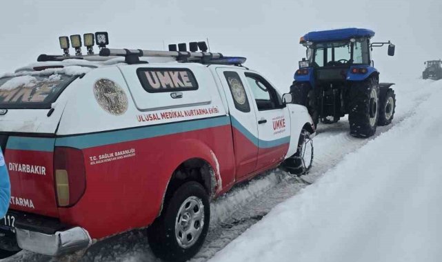 Diyarbakır'da sancısı gelen bir kadın evde doğum gerçekleştirdi. Anne ve bebeği, kar nedeni ile saatler süren çalışmanın ardından kurtarılarak hastaneye kaldırıldı.Diyarbakır'ın Çınar ilçesinde etkili olan yoğun kar yağışı ve tipi, 1 Ocak 2026 günü yaşanan bir doğum vakasında sağlık ekiplerini zamanla yarışan zorlu bir mücadeleye sürükledi. Saat 11.46'da Yeşiltaş Mahallesi'nden gelen doğum ihbarı üzerine Diyarbakır genelinde sağlık birimleri alarma geçti. Sağlık Komuta Kontrol Merkezi koordinasyonunda vakaya 1 kara ambulansı ve 1 UMKE timi olmak üzere toplam 6 sağlık personeli yönlendirildi. Hava ambulansı talebi, olumsuz hava şartları nedeniyle karşılanamazken, karadan ilerleyen ekipler yoğun kar, kapalı yollar ve tipi nedeniyle sık sık durmak zorunda kaldı. Ambulans ekibinin ilerleyememesi üzerine UMKE timi devreye girdi. Sahada ambulansa zincir desteği sağlandı, ancak Aşağı Kırlangıç köyü mevkiinde kar yağışının şiddetlenmesiyle ekipler yeniden mahsur kaldı. Bunun üzerine Çınar Kaymakamlığı ve Büyükşehir Belediyesi ile temasa geçilerek yol açma çalışmaları başlatıldı. Köy halkının traktör desteğiyle ekipler bir süre daha ilerleyebildi. Saatler süren çabanın ardından, yol açma çalışmaları ve saha koordinasyonunun güçlendirilmesiyle UMKE ekibi saat 18.15'te anneye ulaşmayı başardı. Olay yerinde doktor bilgisi dahilinde damar yolu açılarak tıbbi müdahale yapıldı, doğan bebeğin muayenesi gerçekleştirildi. Anne ve bebek, güvenli şekilde ambulans ekiplerine teslim edilerek Çınar 2 No'lu Acil Sağlık Hizmetleri İstasyonu tarafından saat 23.41'de SBÜ Gazi Yaşargil Eğitim ve Araştırma Hastanesi Kadın Hastalıkları ve Doğum ile Çocuk Hastalıkları Hastanesine nakledildi.Operasyonu yakından takip eden Diyarbakır İl Sağlık Müdürü Uzm. Dr. Emre Asiltürk, zorlu süreçte görev alan UMKE Ekip Sorumlusu Salih Bülbül'e, ekibi adına gösterdiği özverili çalışmalardan dolayı teşekkür etti. Asiltürk, "Zorlu kış şartlarına ve saatler süren ulaşım güçlüklerine rağmen ekiplerimiz büyük bir koordinasyon ve özveriyle görevlerini yerine getirdi. UMKE, 112 acil sağlık ekiplerimiz ve vatandaşlarımızın desteğiyle anne ve bebeğimiz güvenli şekilde sağlık tesisimize ulaştırıldı. Diyarbakır'da vatandaşlarımızın sağlık hizmetine erişimi için her şartta sahadayız. Bu süreçte görev yapan tüm sağlık personelimize teşekkür ediyorum'' dedi.