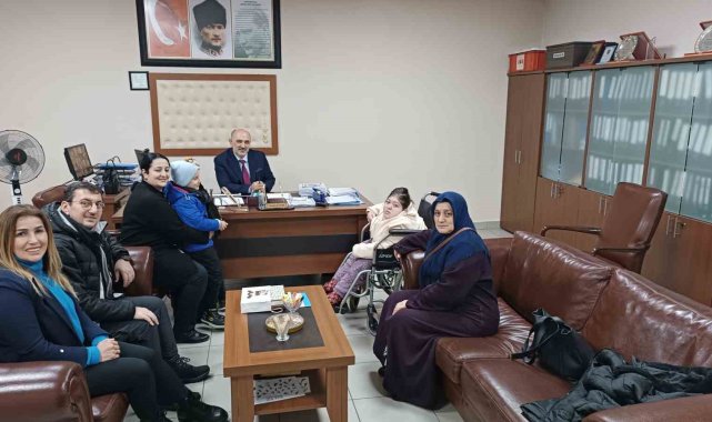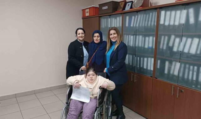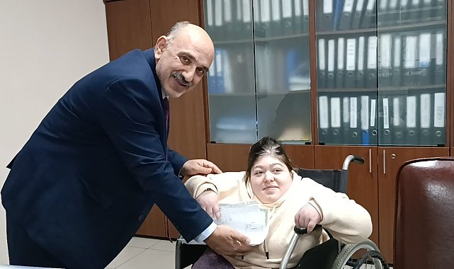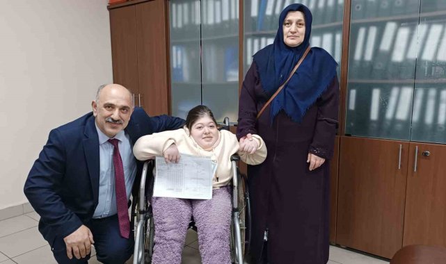 Rize'de engelli olduğu için evde eğitim gören 15 yaşındaki 9. sınıf öğrencisi Medine Nur Şen, karne heyecanını ilk kez okulda yaşadı.