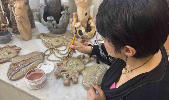 Kayseri'de yaşayan seramik sanatçısı kadın, evine kurduğu atölyesi ile günün her saatinde sanatını bir oda yakından icra edebiliyor.