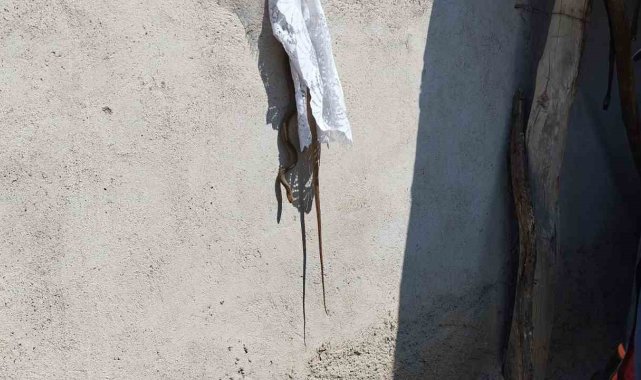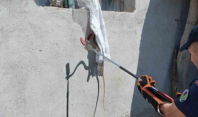 Eve giren yılan itfaiye tarafından yakalandı