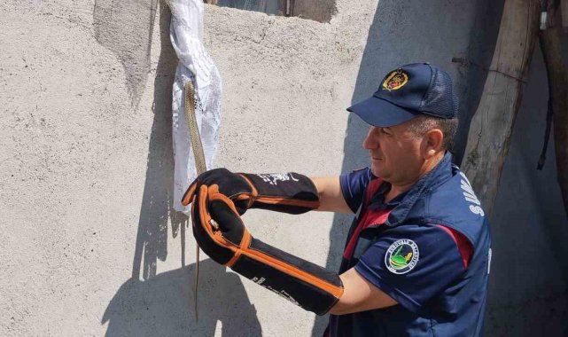 Çorum'un Sungurlu ilçesinde bir eve giren yılan, itfaiye ekipleri tarafından çıkarılarak doğaya salındı.