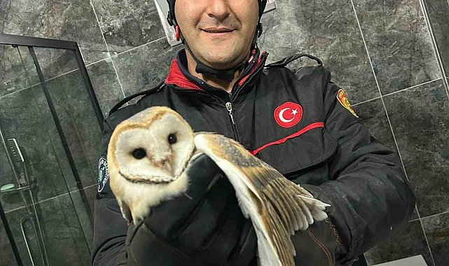 Evin banyosunda mahsur kalan baykuşu itfaiye ekibi kurtardı