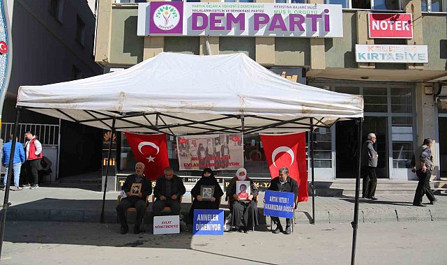 Çocuklarının terör örgütü PKK mensupları tarafından dağa kaçırıldığı iddiasıyla DEM Parti Muş İl Başkanlığı önünde oturma eylemi başlatan aileler, 168 haftadır kararlı bir şekilde evlat nöbetini sürdürüyor.