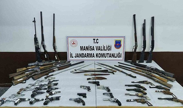 Manisa İl Jandarma Komutanlığı ekiplerince 3 ilçede ortak gerçekleştirilen operasyonda, çok sayıda ruhsatsız silah ve mühimmat ele geçirildi. Operasyon çerçevesinde gözaltına alınan 4 şüpheli adliyeye sevk edildi.Manisa İl Jandarma Komutanlığı İstihbarat ve Kaçakçılık Organize Suçlarla Mücadele (KOM) Şube Müdürlükleri koordinesinde, Kırkağaç, Soma ve Akhisar İlçe Jandarma Komutanlıkları ekiplerinin katılımıyla M.E.Y. (34), B.N. (47), A.E. (58) ve S.A.Y. (44) isimli şahıslara ait ev ve iş yerlerine eş zamanlı operasyon düzenlendi.Yapılan aramalarda, 31 adet ruhsatsız tabanca, 19 adet ruhsatsız av tüfeği, tabancalara ait çok sayıda fişek, şarjör ve çeşitli tabanca parçaları, 4 adet kılıç, 4 adet kama ele geçirildi.Ele geçirilen malzemelere el konulurken, gözaltına alınan şahıslar, işlemlerinin ardından adliyeye sevk edildi.