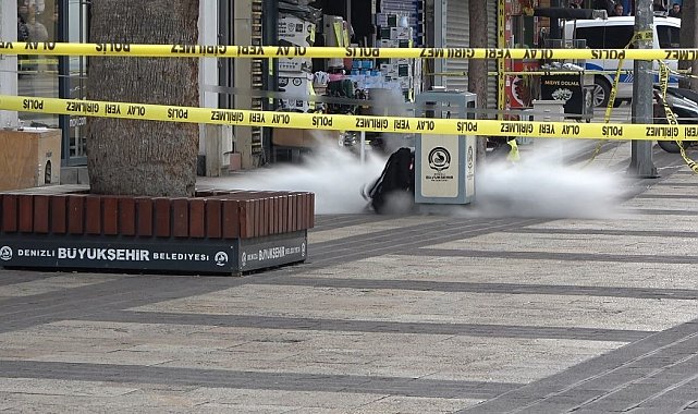Denizli'de iş bırakan beş sendikaya bağlı öğretmenlerin yürüyüş güzergâhında bulunan CHP il binası önüne bırakılan şüpheli sırt çantası fünyeyle patlatıldı. Güvenlik tedbirleri altında patlatılan çantadan daha birkaç dakika önce mağazadan satın alınan 7 bin liralık yeni kıyafetler çıktı.Olay, saat 12.00 sıralarında Pamukkale ilçesine bağlı 15 Mayıs Mahallesi Gazi Mustafa Kemal Bulvarı numara 109 adresinde bulunan CHP Denizli il binası önünde meydana geldi. Edinilen bilgiye göre; memur maaşlarındaki artışı protesto etmek için iş bırakan beş sendikaya bağlı yüzlerce öğretmen, Denizli Valiliği önünden başlayarak Delikli Çınar Meydanına doğru yürüyüşe geçti. Eylemci öğretmenlerin yürüyüş güzergahında bulunan CHP il binasının da bulunduğu apartmanın önündeki çöp bidonunun yanına bırakılan sırt çantasını görenler, 112 Acil Çağrı Merkezine ihbarda bulundu.Birkaç dakika önce alınan 7 bin liralık kıyafetler çıktıEylem içi bölgede görevli olan polis ekipleri, şüpheli sırt çantasının bulunduğu bölgeyi kontrol altı. Eylemci öğretmenlerin farklı bir rotadan geçişi ve çevredeki vatandaşların bölgeden uzaklaştırılmasının ardından, bölge güvenlik şeridiyle kapatılarak olay yerine bomba imha ekipleri yönlendirildi. Şüpheli çantada yapılan incelemenin ardından kontrollü patlatma kararı alındı. Gerekli önlemleri alan bomba imha uzmanı, şüpheli çantayı fünyeyle patlattı.Büyük bir gürültüyle gerçekleşen patlamanın ardından, şüpheli sırt çantasının içerisinden kıyafetler çıktı. CHP il binasının zemin katında faaliyet gösteren giyim mağazası çalışanları, patlatılan çantadan çıkan 7 bin liralık yeni kıyafetlerin dakikalar öncesinde kendi iş yerlerinden satın alındığını ifade etti. Kısa süreli korku ve paniğe neden olan olayın ardından bölgedeki güvenlik önlemleri kaldırıldı.