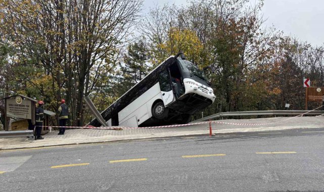 Kocaeli'nin Kartepe ilçesinde park halindeyken hareket eden tur otobüsü bariyeri aşıp şarampole düştü. Facianın eşiğinden dönüldüğü kazada yaralanan olmadı.