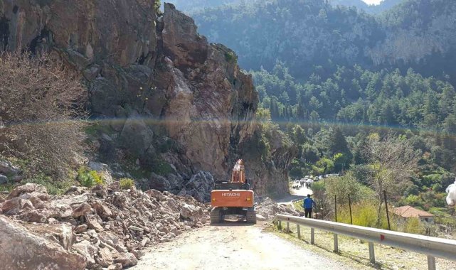 Muğla'nın Fethiye ilçesi Faralya Mahallesi Kabak mevkiinde meydana gelen heyelan ve kaya düşmesi nedeniyle yol ulaşıma kapandı. Muğla Büyükşehir Belediyesi ekipleri hızlı müdahaleyle yolu açmak için çalışmalara başladı.