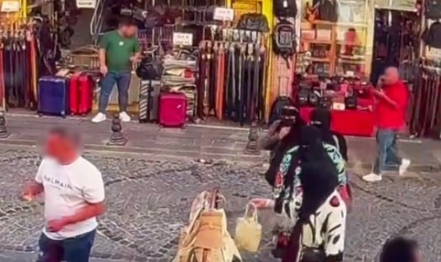 Fatih'te yüzleri kapalı 4 kadın, bir çanta dükkanın önünde ürünleri inceleme bahanesiyle, 3 çantayı alarak kayıplara karıştı. O anlar güvenlik kamerasına yansıdı.Olay, 4 Temmuz Cuma günü Fatih İlçesi Mercan Mahallesi'nde saat 17.30 sıralarında meydana geldi. İddiaya göre, kimlikleri henüz belirlenemeyen 4 kadın, bir çanta dükkanının önüne gelerek sergilenen ürünleri inceledi. Yüzleri kapalı olan kadınlar, kısa süre etrafı kolaçan ettikten sonra, dükkanın önünde bulunan çantalardan üçünü alarak uzaklaştı. O anlar iş yerinin güvenlik kamerasına anbean yansıdı. Görüntülerde, 4 kadının çantacının önüne geldiği, ürünlere göz attığı ve ardından herhangi bir ödeme yapmadan çantaları alıp uzaklaştığı anlar yer aldı.