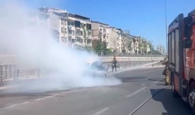 İstanbul Fatih'te hareket halindeki otomobil henüz belirlenemeyen bir nedenle yanmaya başladı. Sürücünün kendini güçlükle dışarı atması sonrası alevlere teslim olan otomobil, itfaiye ekiplerinin müdahalesinin ardından söndürüldü.Yangın, saat 14.00 sıralarında Fatih Kennedy Caddesi üzerinde meydana geldi. Edinilen bilgiye göre, 34 FIE plakalı otomobil seyir halinde iken motor kısmından dumanlar yükseldi. Dumanların yükseldiğini fark eden sürücü yol kenarına çekerek otomobilden indi. Motor kısmında başlayan yangın kısa sürede büyüdü. İhbar üzerine olay yerine polis ve itfaiye ekipleri sevk edildi.Alevlerin yükseldiği anlar kameradaSeyir halinde dumanların yükseldiği otomobildeki yangın sürücünün yol kenarına park etmesinin ardından büyüdü. Alevlerin yükseldiği o anlar ise çevredeki vatandaşlar tarafından cep telefonu kamerası ile kaydedildi.Kısa sürede büyüyen alevlere olay yerine gelen itfaiye ekipleri müdahalede bulundu. Ekiplerin çalışmaları sonucu yangın tamamen söndürülerek soğutma çalışması yapıldı. Can kaybı ve yaralanma olmazken, yangın sonrası otomobil kullanılamaz hale geldi.