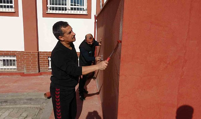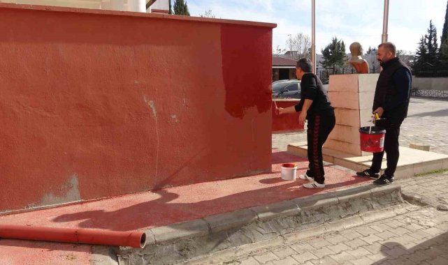 Adıyaman Borsa İstanbul Lisesi'nin görsel sanatlar resim öğretmeni ve rehber öğretmeni, 2 haftalık ara tatilde okulun bakım, onarım ve boya işlerini yaparak fedakarlık örneği gösterdi.