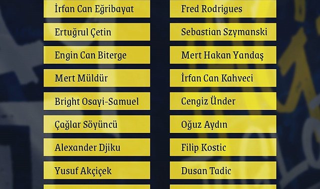 Fenerbahçe'nin, Trendyol Süper Lig'de yarın deplasmanda karşılaşacağı Adana Demirspor maçının kamp kadrosu belli oldu. Sarı-lacivertlilerde 6 futbolcu kafilede yer almadı.Trendyol Süper Lig'in 20. haftasında yarın deplasmanda Adana Demirspor ile karşılaşacak olan Fenerbahçe, bu mücadelenin hazırlıklarını tamamlayarak mücadelenin oynanacağı kente hareket etti. Sarı-lacivertli kafilede tedavileri süren Jayden Oosterwolde, Rodrigo Becao, İsmail Yüksek ve Dominik Livakovic yer almadı. Samet Akaydin teknik heyet kararıyla, Allan Saint-Maximin de gribal enfeksiyon nedeniyle kadroda bulunmuyor. Altyapıda forma giyen kaleci Engin Can Biterge de Adana'ya giden kafileye alındı.Fenerbahçe'nin 22 kişilik kamp kadrosu şöyle:"İrfan Can Eğribayat, Osman Ertuğrul Çetin, Engin Can Biterge, Mert Müldür, Bright Osayi-Samuel, Çağlar Söyüncü, Alexander Djiku, Yusuf Akçiçek, Levent Mercan, Sofyan Amrabat, Bartuğ Elmaz, Fred Rodrigues, Sebastian Szymanski, Mert Hakan Yandaş, İrfan Can Kahveci, Cengiz Ünder, Oğuz Aydın, Filip Kostic, Dusan Tadic, Edin Dzeko, Youssef En-Nesyri, Cenk Tosun."
