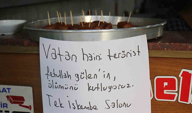 Sakarya'nın Adapazarı ilçesinde esnaf, Fetullahçı Terör Örgütü (FETÖ) elebaşı Fetullah Gülen'in ölümü sebebiyle lokantasında bedava tatlı dağıttı.İsmail Özdemir isimli lokanta sahibi, ABD'nin Pensilvanya eyaletinde yaşayan FETÖ elebaşı Fetullah Gülen'in sosyal medyadan ölüm haberini öğrendi. Haberden emin olmayan Özdemir, televizyonda da aynı haberi görünce hain örgüt liderinin ölümünün şerefine lokantasında bedava Kemalpaşa tatlısı dağıtmaya karar verdi. Özdemir, "Sabahleyin sosyal medyada gezinirken FETÖ'nün öldüğüne dair haberler gördüm. Ustaya bu haber doğruysa kutlamak için tatlı dağıtacağımı söyledim. Haber televizyon kanallarında da çıkınca sözümüzü de tutmuş olduk. Bu hain teröristin ölümünü kutluyoruz. Bu hainin ölümünü bugüne özel kutlayacağız" dedi."Toprağı bol olsun yerine cehennemde ateşi bol olsun demek istiyorum"Arkadaşını bu davranışından dolayı tebrik eden Murat Cicioğlu, "Hain terör örgütü lideri Fetullah Gülen'in ölümü dolayısıyla bizlere bu durumun önemini anlatmak için Kemalpaşa tatlısı dağıtma hizmetinde bulundu. Toprağı bol olsun yerine cehennemde ateşi bol olsun demek istiyorum. İsmail kardeşimizi de bu davranışından dolayı tebrik ediyorum. 15 Temmuz'da şehit olan tüm vatandaşlarımıza Allahtan rahmet diliyorum" diye konuştu.