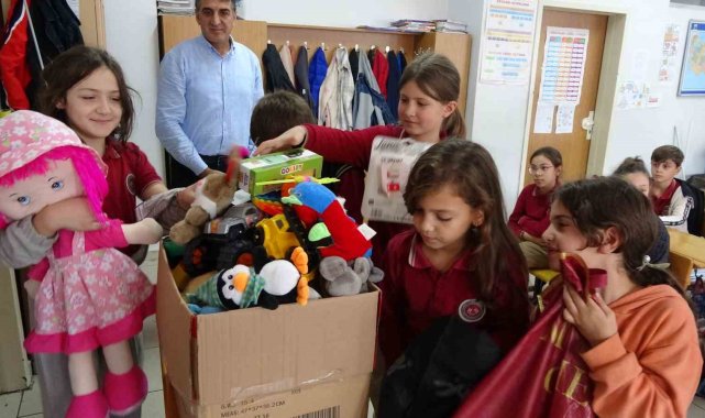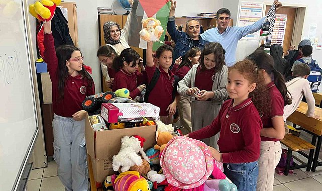 Trabzon'un Ortahisar ilçesinde Ahmet Saka İlkokulu öğrencileri, İsrail zulmü altındaki Gazze'ye destek olmak ve insani drama dikkat çekmek amacıyla düzenledikleri etkinlikle topladıkları oyuncakları Filistinli çocuklara göndermek üzere Trabzon Büyükşehir Belediyesi ekiplerine teslim etti.