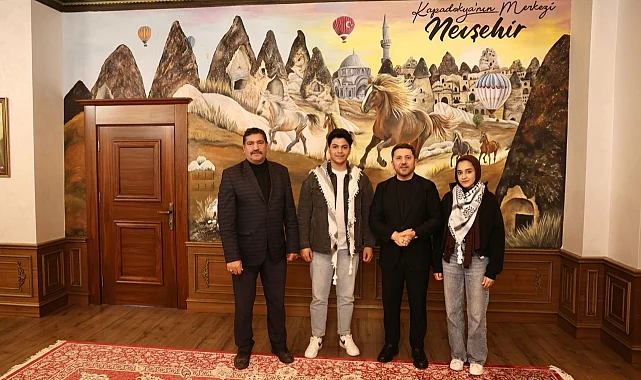 Nevşehir Hacı Bektaş Veli Üniversitesi'nde öğrenim gören 2 üniversite öğrencisi Filistin'e verdiği destek konuşmasından dolayı Nevşehir Belediye Başkanı Rasim Arı'yı makamında ziyaret ederek teşekkür etti.