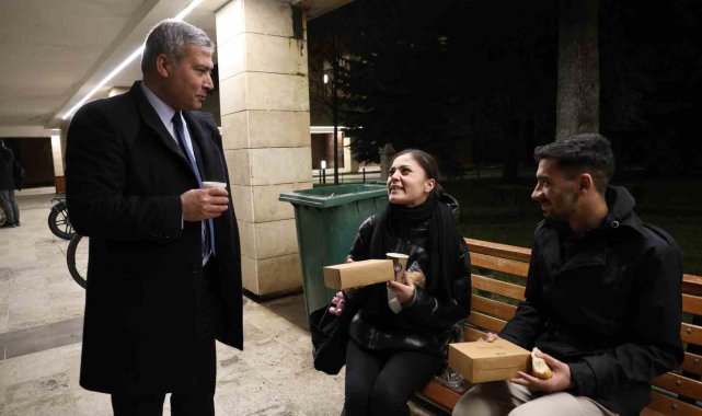 Final haftasına hazırlanan öğrencilere Rektör Adıgüzel'den çorba, çay ve kahve ikramı