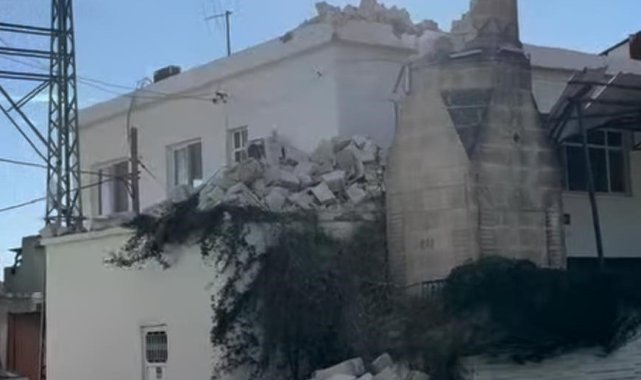 Mersin'in Tarsus ilçesinde fırtına nedeniyle bir caminin minaresi yıkıldı.