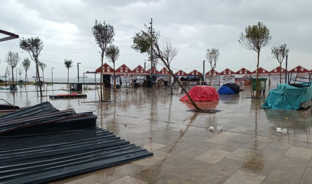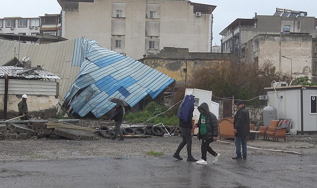 Hatay'ın İskenderun ilçesinde gece saatlerinde etkili olan fırtına hayatı olumsuz etkiledi. Yıkılan çatı ve devrilen direkler vatandaşların cep telefonu kameralarına yansıdı.İskenderun ilçesinde gece geç saatlerde başlayan kuvvetli rüzgarın oluşturduğu hasar, gündüz ortaya çıktı. Sahil kesimi ve kent genelinde etkili olan fırtına nedeniyle bazı binaların çatıları sökülerek çevreye savruldu. Uçan çatı parçaları park halindeki araçlara ve elektrik hatlarına zarar verdi. Fırtına sırasında devrilen aydınlatma direkleri ve kopan kablolar nedeniyle bazı mahallelerde elektrik kesintileri yaşandı. Yaşanan olaylarda 2 aracın hasar gördüğü öğrenildi. Fırtınanın ardından oluşan hasar, vatandaşlar tarafından cep telefonu kameralarıyla görüntülendi. Yetkililer, olumsuz hava şartlarına karşı dikkatli olunması yönünde uyarılarda bulundu."Cebimize taş koyup yürüyebilirdik"Rüzgar o kadar şiddetliydi ki ancak cebimize taş koyup yürüyebilirdik diyen Hasan Saygılı, "Yolda yürümekte biraz zorlandım, hatta bir ara tutunduğumuz oldu. İnsanlar rüzgardan dolayı motora bile binemiyordu. Yürümekte zorlanıyor, tutuna tutuna ilerliyorlardı. Çöp konteynerini biz taşıyamayız, yürütemeyiz, düşünün rüzgar bunu bile sürüklüyordu. İyi ki uçmadık. Cebimize taş koyup yürüyebilirdik, en azından onu yapmadık" diye konuştu.Sahilde şiddetli rüzgarla birlikte kırılan direğin çadırları uçurduğunu söyleyen esnaf Oğuzhan Gürbüz, "Akşamdan belliydi böyle olacağı. Antalya'da bile böyle bir rüzgar görmedim. Geldiğimizde akşam dondurmacılar ve konteynerler uçmuştu. Burası bize sürpriz oldu. Sabah geldiğimizde direk yıkılmış, çadırlar yırtılmıştı. Dün gece buraları toplayıp eve gittik, sabah bu manzarayla karşılaştık. Standı olan herkesin emekleri boşa gidiyor, denize uçanlar var, üzücü. Çok şiddetliydi, ben bile zor duruyordum" dedi.