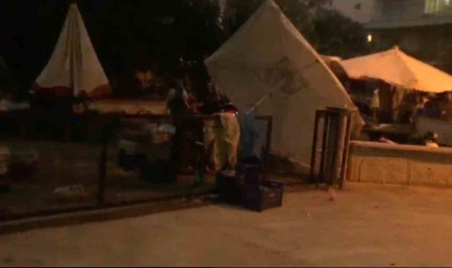 Fırtına pazar yerindeki güneşlikleri devirdi, tezgahları savurdu