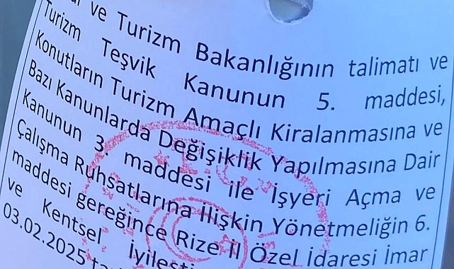 Kültür ve Turizm Bakanlığı Rize'de Fırtına Vadisi'nde ruhsatsız konaklama tesislerine karşı harekete geçti. Bakanlığın valiliklere gönderdiği yazının ardından turizm işletme belgesi olmayan ve kayıt dışı faaliyet gösteren tesisler tek tek mühürlenmeye başladı.