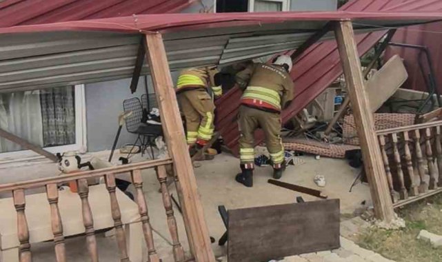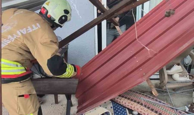 Fırtınanın çatısını uçurduğu evde mahsur kalan 3 kişiyi itfaiye kurtardı