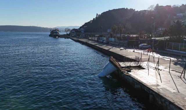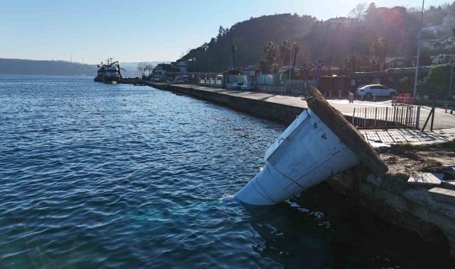 İstanbul Sarıyer'de dün etkili olan lodosun etkisiyle devrilen deniz feneri dronla görüntülendi.