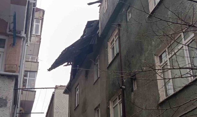 İstanbul Küçükçekmece'de kuvvetli fırtınanın etkisiyle bir binadan uçan çatının parçaları diğer binaya savruldu. Yaşanan olay bina sakinlerinde korku ve paniğe sebep oldu.