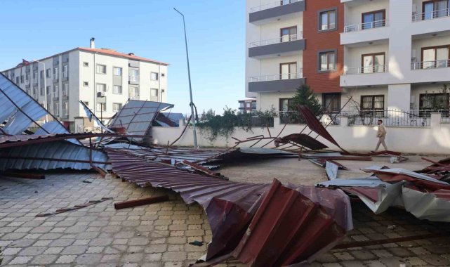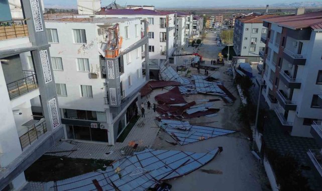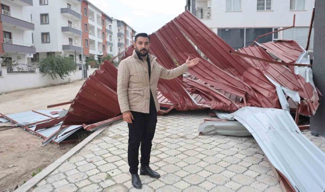 Hatay'da kuvvetli fırtınanın yerinden söktüğü metal çatının kendisine isabet etmesinden koşarak kurtulan vatandaşın ölüme saniyeler kala verdiği mücadele güvenlik kamerasına yansıdı.Meteorolojinin uyarıda bulunduğu Hatay'da kuvvetli fırtına ve yağış kentte hayatı olumsuz etkilemişti. Antakya ilçesi Serinyol Mahallesi'nde binaların metal çatıları fırtına nedeniyle uçtu. Binaların çatılarının uçtuğu esnada yoldan geçen vatandaşlarsa canlarını zor kurtardılar. Güvenlik kamerasına yansıyan görüntülerde; üzerine çatı gelen bir vatandaşın çatıdan koşarak kurtulduğu görüldü. Çatılardan dolayı herhangi bir yaralanma olmazken, 5 araçta maddi hasar oluştu."Karşı yolda bazı vatandaşlar saniyeler kala canlarını kurtardılar"Fırtınanın yerinden söktüğü çatıların uçtuğu esnasında vatandaşın ölümden son anda kurtulduğunu ifade eden Cihat Göktaş, "Pazar günü iş yerimizde çalışırken aniden fırtına çıktı. Fırtınayla birlikte önce bizim bloğumuzdaki çatılar ve daha sonra diğer binalardaki çatılar aşağıya doğru uçtu. Buradaki vatandaşlar çatılardan kaçmaya çalışıyorlardı. Benimde dükkanım fırtınadan dolayı ciddi bir zarar aldı. Deprem felaketinin ardından böyle bir felaket bizi yormaya başladı. Fırtına ve çatının uçtuğu anlarda dükkandaydık. Arabaların bazıları kaçmaya çalıştı. Karşı yolda bazı vatandaşlar saniyeler kala canlarını kurtardılar. Eğer vatandaşlar kaçmasalardı ciddi kayıplar olabilirdi" dedi."Benim aracım ve 2-3 araç daha zarar gördü"Evladının fırtınada uçan çatılardan 2 arabanın arasına sığınarak kurtulduğunu dile getiren Zafer Koç, "Hafta sonu oğlum beni aradı. Yoğun bir fırtına olduğunu söyleyerek arabayı çekmek istediğini söyledi. Oğlum arabayı çekemedi ve son anda arabadan inip 2 arabanın arasına girdi. Oğlum o fırtınadan uçan çatılardan o şekilde kurtuldu. Oğlum fırtına da zarar görebilirdi. Benim aracım ve 2-3 araç daha zarar gördü" ifadelerini kullandı.