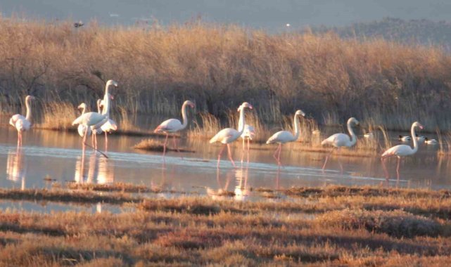 Flamingolar Burhaniye sahillerini mesken tuttu