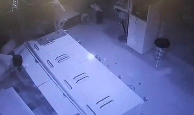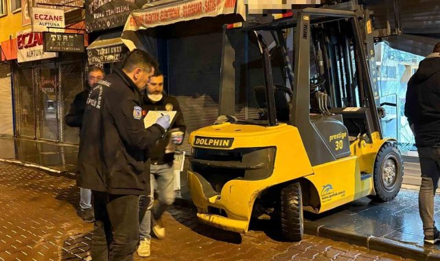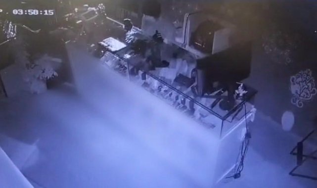 Öte yandan, hırsızın forkliftle kuyumcu dükkanının kepengini kırdığı ve tezgahı devirdikten sonra altınları alarak kaçtığı anlar kameralara yansıdı. Şahsın hırsızlık sırasında bere ve cerrahi maskeyle yüzünü gizlediği anlar da saniye saniye kaydedildi.