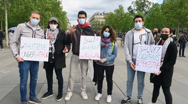 Protesto sırasında yapılan konuşmada, "Fransız hükümetine soruyoruz, İsrail'i Filistinlilere yönelik katliamları ve işlediği insanlık suçuna son vermesi için daha ne kadar Filistinli çocuk öldürülmesi gerekiyor. Filistin halkı ne zaman özgür ve insanca yaşayacak?" denildi.