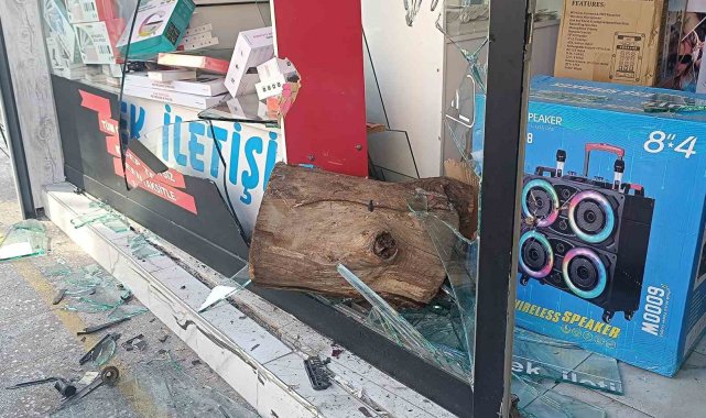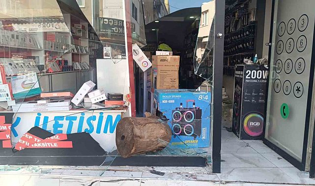 Manisa'nın Turgutlu ilçesinde meydana gelen kazada gaz yerine frene basan sürücü telefoncu dükkanına daldı.