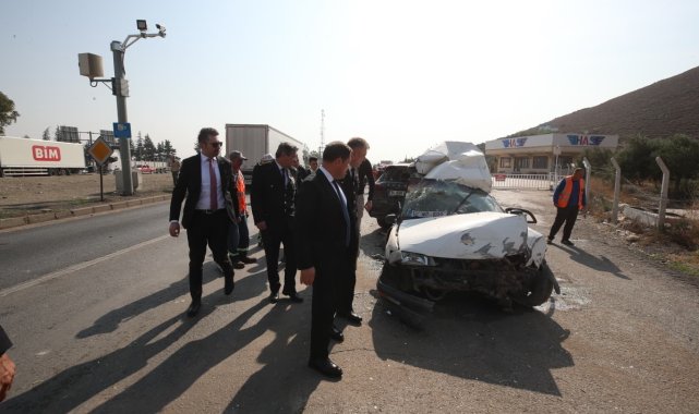 Hatay'da freni arızalanan kamyon, ışıkta bekleyen 8 araca çarparken kazada 4 kişi yaralandı. Vali Mustafa Masatlı da kaza alanında incelemelerde bulundu.Kaza; İskenderun - Antakya yolu Topboğazı mevkiinde meydana geldi. Fren arızası yaşayan kamyon, sürücüsünün kontrolden çıkarak ışıkta bekleyen 8 araca çarptı. Kazada hurdaya dönen araçlardan yaralı şahısları itfaiye ekipleri kurtardı. Yaralı 4 şahıs, ilk müdahalenin ardından hastanede tedavi altına alındı. Hatay Valisi Mustafa Masatlı da bölgeye gelerek kazanın yaşandığı alanda incelemelerde bulundu.