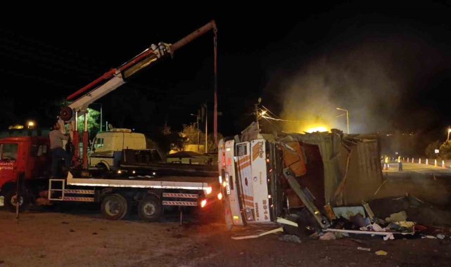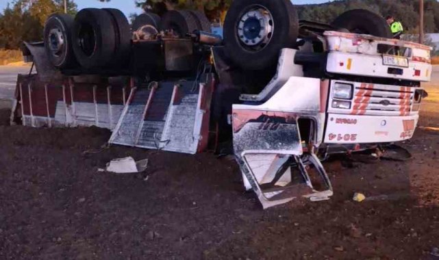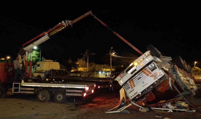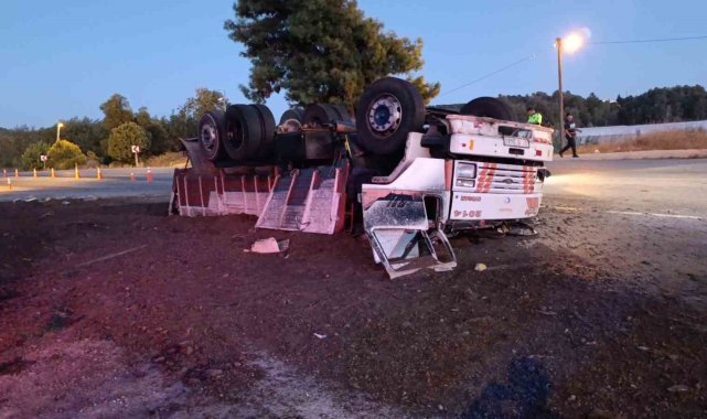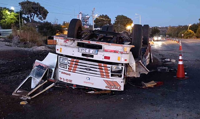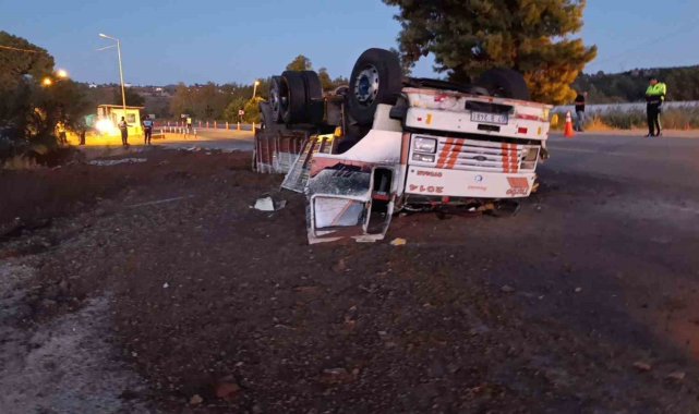 Antalya'da freni patlayan gübre yüklü kamyon Jandarma ve Polisin ortak uygulama noktasına dalarak devrildi. Yol Kontrol Noktasında görevli Jandarma ve Polis ekiplerinin kamyonu erken fark etmeleri sayesinde facianın eşiğinden dönüldü.Kaza Antalya'nın Manavgat ilçesinde yaşandı. Edinilen bilgiye göre Akseki-Manavgat D-695 Karayolunda Akseki istikametinden gelen seyir halindeki Kadir K.'nın kullandığı 07 B 2481 plakalı hayvan gübresi yüklü Ford marka kamyonun freni patladı. Aracı kontrol etmekte zorlanan sürücü Hacıobası Yol Kontrol noktasının içerisinden geçerek, kontrol noktası çıkışında bulunan virajı alamayarak beton bariyerlere çarptı. Yol Kontrol Noktasında görevli Jandarma ve Polislerin kamyonu erken fark etmeleri sayesinde facianın eşiğinden dönülürken süratli bir şekilde bariyerlere çarpan kamyon devrildi.Sürücü hastaneye kaldırıldıTers dönen araçta çıkan yangın kontrol noktasında görevli personel ve vatandaşların müdahalesiyle söndürüldü. Araçtan çıkarılan kamyon sürücüsü 112 sağlık ekibinin olay yerindeki müdahalesinin ardından ambulansla hastaneye kaldırıldı. Kamyonun yolun sağ şeridinde ters dönmesi ve yola gübre dökülmesi nedeniyle yolda trafik uzun süre tek şeritten kontrollü olarak sağlandı. Kamyonun vinçle bulunduğu kaldırılarak yolun temizlenmesinin ardından trafik akışı normale döndü.