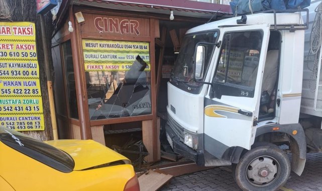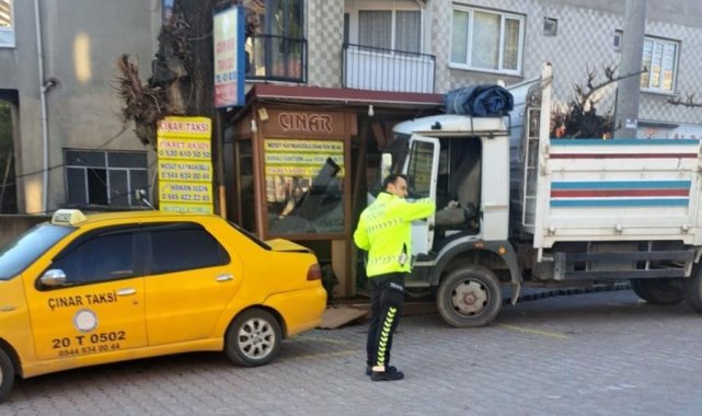 Denizli'de park halinde frenleri boşalan kamyon, taksi durağına girdi.Olay Denizli'nin Buldan İlçesi Dörteylül Mahallesinde meydana geldi. Edinilen bilgilere göre, park halindeyken frenleri boşalan kamyon kendi kendine hareket etti. İçerisinde sürücüsünde de olamadığı kamyonet kontrolsüz şekilde hızlanmaya başladı. Karşı tarafta bulunan taksi durağına çarparak duran kamyon taksi durağına büyük hasar verdi. Taksi durağının içerisinde oturan taksi şoförünün olaydan yara almadan kurtulması kamyon sahibine ve durak sahibine teselli kaynağı oldu. ihbar üzerine bölgeye gelen polis ekipleri olayla ilgili incele yaptı.Olayla ilgili soruşturma başlatıldı.