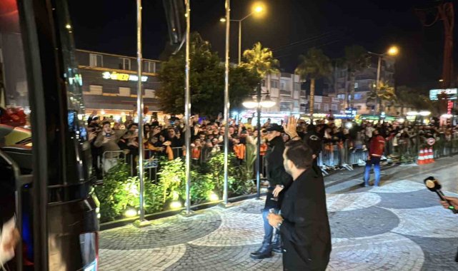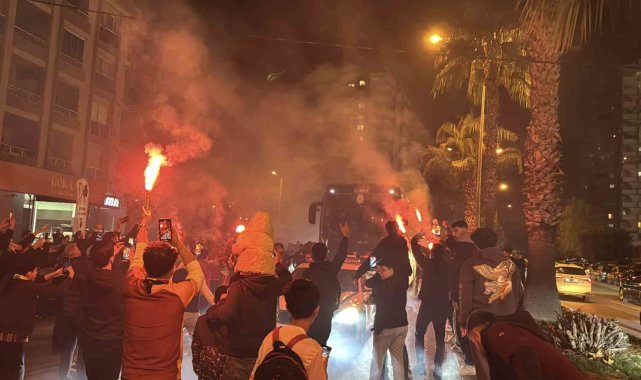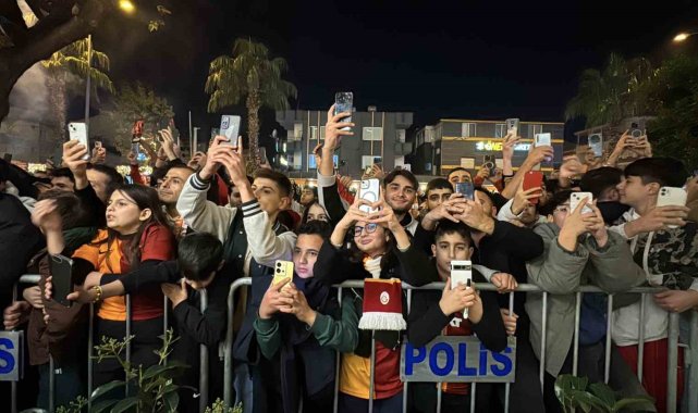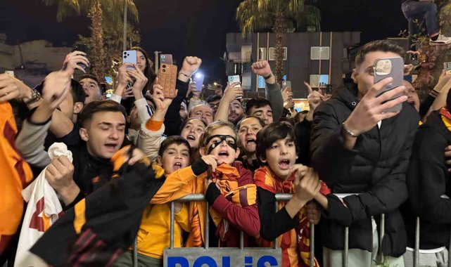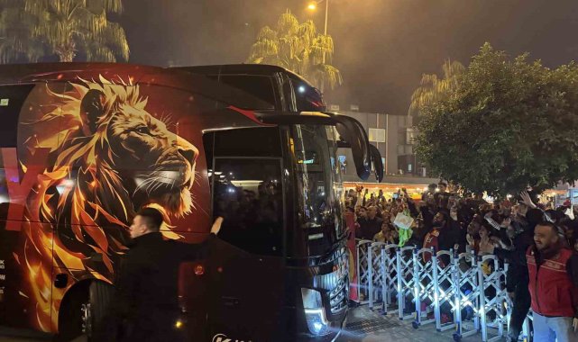 Galatasaray, yarın Atakaş Hatayspor ile yapacağı karşılaşma için Mersin'e geldi. Sarı-kırmızılı taraftarlar, kafileyi kalacağı otelin önünde meşalelerle karşıladı.Trendyol Süper Lig'in 20. haftasında Galatasaray, yarın saat 20.00'de Mersin Stadyumu'nda Hatayspor ile mücadele edecek. Sarı-kırmızılılar, bu karşılaşmanın hazırlıklarını tamamlayarak, İstanbul Havalimanı Genel Havacılık Terminali'nden özel uçakla Mersin'e geldi. Çukurova Uluslararası Havalimanı'na inen sarı-kırmızılı kafile, takım otobüsüyle kentte konaklayacakları otele geldi. Otel önündeki caddede takımı karşılayan Galatasaraylı taraftarlar, meşale yakıp tezahüratta bulundu. Sloganlar eşliğinde otobüsten inen teknik direktör Okan Buruk, taraftarları selamladı.Futbolcular taraftarlara üçlü çektirdiKafilenin otele girmesinin ardından girişte bekleyerek slogan atan taraftarlar, takımı dışarı çağırdı. Bir süre sonra otelin önüne inen sarı-kırmızılı futbolcular ise taraftarları selamlayarak üçlü çektirdi.