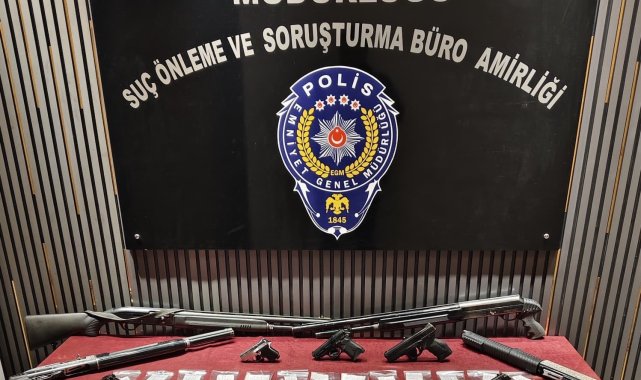 Gaziantep'te polis ekipleri tarafından kent genelinde yapılan asayiş operasyonlarında 4 şüpheli yakalandı.Gaziantep İl Emniyet Müdürlüğüne bağlı Şahinbey İlçe Emniyet Müdürlüğü ekipleri kent genelinde operasyonlar düzenledi. Operasyonlarda, 6 adet ruhsatsız tüfek, 4 adet ruhsatsız tabanca, 4 adet kuru sıkı tabanca, 128 gram metamfetamin, 51 kök Hint keneviri, 25 adet captagon hap ele geçirildi.Yapılan operasyonlar kapsamında aralarında dolandırıcılık suçundan 12 yıl 11 ay hapis cezasıyla aranan şahsında bulunduğu 4 şüpheli yakalandı.Yakalanan şahıslar hakkında yasal işlem başlatıldı.