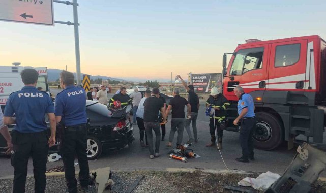 GAZİANTEP(İHA) – Gaziantep'in İslahiye ilçesinde tır ile çarpışan otomobildeki nişanlı çift yaralandı.