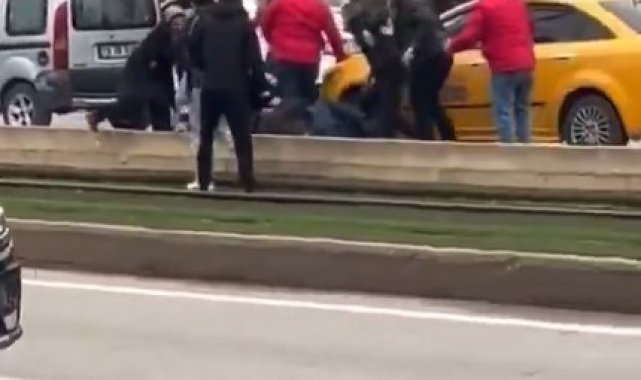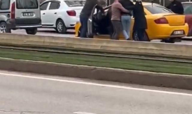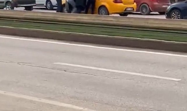 Gaziantep'te trafikte yaşanan tartışmanın kavgaya dönüşmesi sonucu aracında bulunan taksiciye meydan dayağı atıldı. Dehşet anlarının saniye saniye cep telefonu kamerasına yansıdığı anlarda araya girmeye çalışan vatandaşların çabası da yetersiz kaldı.Olay, Şahinbey ilçesi Güneykent Mahallesi Üniversite Bulvarı'nda meydana geldi. İddiaya göre, trafikte bilinmeyen bir nedenle yaşanan tartışma sonrası araçlarını durduran şahıslar, arkalarındaki taksiciye saldırmaya başladı. Kısa sürede büyüyen olayda aracında bulunan taksiciye meydan dayağı atıldı. Taksicinin bulunduğu araca gelen şahıslar, defalarca tekme ve yumruk sallayarak taksiciyi darp etmeye çalıştı.Dehşet anları saniye saniye cep telefonu kamerasındaDehşet anlarının saniye saniye cep telefonu kamerasına yansıdığı anlarda araya girmeye çalışan vatandaşların çabası da yetersiz kaldı. Durumu fark eden bazı vatandaşlar olay yerine koşarak kavgayı ayırmaya çalışırken, diğer sürücüler ise kornalarına basarak duruma tepki gösterdi. Görüntülerin devamında kavgaya başka şahısların da dahil olması ve bir şahsın başka bir şahsa koşarak yumruk atması ise dikkat çekti.