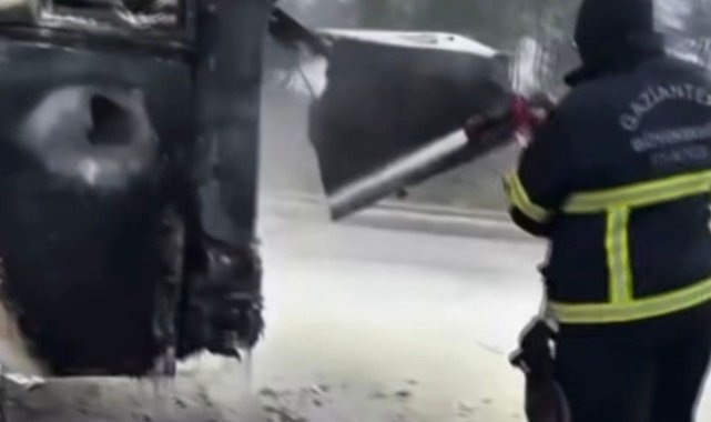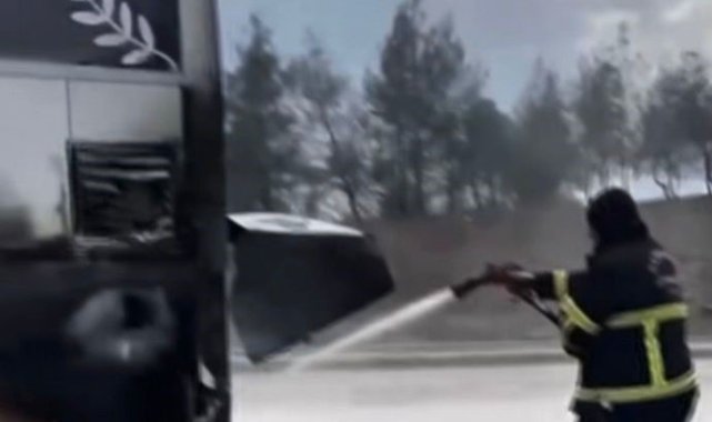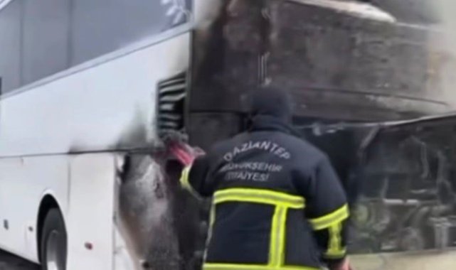 Gaziantep'te yolcu otobüsünde çıkan yangını itfaiye söndürdü