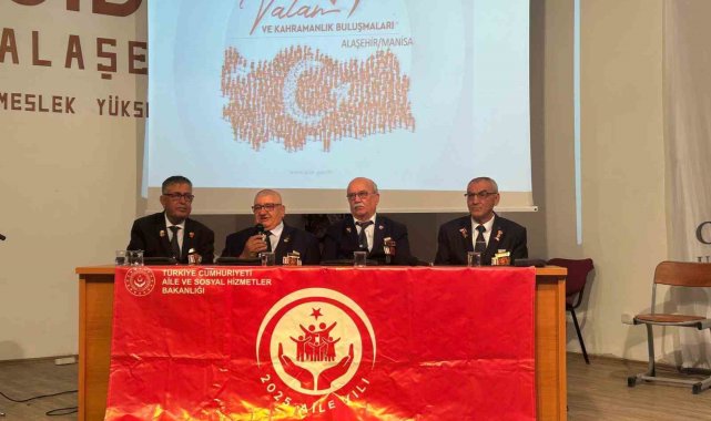 Manisa'nın Alaşehir ilçesinde, 29 Ekim Cumhuriyet Bayramı kutlamaları kapsamında gaziler, öğrencilerle bir araya gelerek askerlik hatıralarını paylaştı.Alaşehir Sosyal Hizmet Merkezi koordinesinde, Cumhuriyetin 102'nci yılı dolayısıyla düzenlenen "Vatan ve Kahramanlık Buluşmaları" programı, Celal Bayar Üniversitesi Alaşehir Meslek Yüksekokulu anfisinde gerçekleştirildi.Saygı duruşunda bulunulması ve İstiklal Marşı'nın okunmasıyla başlayan programa, Alaşehir Sosyal Hizmet Merkezi Müdür Vekili Dilek Barbak, Alaşehir Muharip Gaziler Derneği Başkanı Osman Saraç, Okul Müdürü Prof. Dr. Sinan Anlaş, Sosyal Hizmetler personeli, Şehit Yakınları ve Gaziler Birim Sorumlusu Sosyolog Gamze Yılmaz, dernek üyeleri, öğretmenler ve öğrenciler katıldı.Türkiye Muharip Gaziler Derneği Alaşehir Şubesi Başkanı Osman Saraç ile gaziler Halil Kara, Mümin Dönmez ve Mehmet Ali Demirbulat, askerlik dönemlerine ait unutamadıkları hatıralarını öğrencilerle paylaştı. Program sonunda gaziler, öğrencilerden gelen soruları yanıtladı.Etkinliğin sonunda Alaşehir Muharip Gaziler Derneği Başkanı Osman Saraç ve gaziler Halil Kara, Mümin Dönmez, Mehmet Ali Demirbulat'a Okul Müdürü Prof. Dr. Sinan Anlaş tarafından çiçek takdim edildi. Gaziler, öğrenciler tarafından uzun süre alkışlandı.Alaşehir Sosyal Hizmet Merkezi Şehit Yakınları ve Gaziler Birim Sorumlusu Sosyolog Gamze Yılmaz, "Aile ve Sosyal Hizmetler Bakanlığımızın Cumhuriyetimizin 102'nci yılı kapsamında yürüttüğü 'Vatan ve Kahramanlık' projesi çerçevesinde öğrencilerimizle gazilerimizi buluşturduk. Çok anlamlı bir etkinlik oldu, emeği geçen herkese teşekkür ederiz" dedi.
