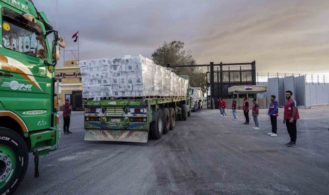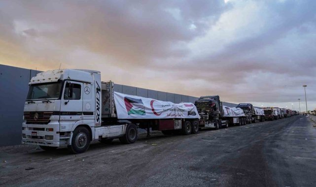 İsrail ve Hamas arasında varılan ateşkes anlaşmasının ardından Mısır'dan Gazze Şeridi'ne insani yardım taşıyan 400 kamyon giriş yaptı.İsrail ile Hamas arasındaki ateşkes anlaşması kapsamında Gazze Şeridi'ne yönelik insani yardımlar yeniden başladı. Mısır Kızılayı, El-Ariş'teki lojistik merkezinde hazırlık seviyesinin en üst seviye çıkarıldığı belirterek, Mısır'dan Gazze Şeridi'ne insani yardım taşıyan 400 kamyonun giriş yaptığını ifade etti. Mısır Kızılayı, kamyonların, 6 bin tondan fazla gıda, yaklaşık bin ton tıbbi malzeme, çadır, battaniye gibi 9 bin tondan fazla acil yardım malzemesi ve 2 bin ton yakıt taşıdığını açıkladı. Refah Sınırı Kapısı'ndan giriş yapan kamyonların Gazze Şehri'ne kadar yardımları ulaştıracağı aktarıldı.